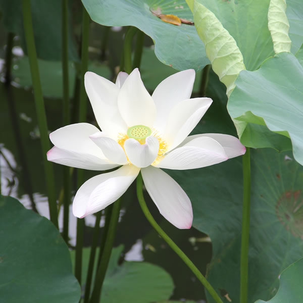 我国湖南省盛产食用莲,其中的白湘莲为大株型品种,适合在大型水面栽培。拍摄于2012年8月7日。