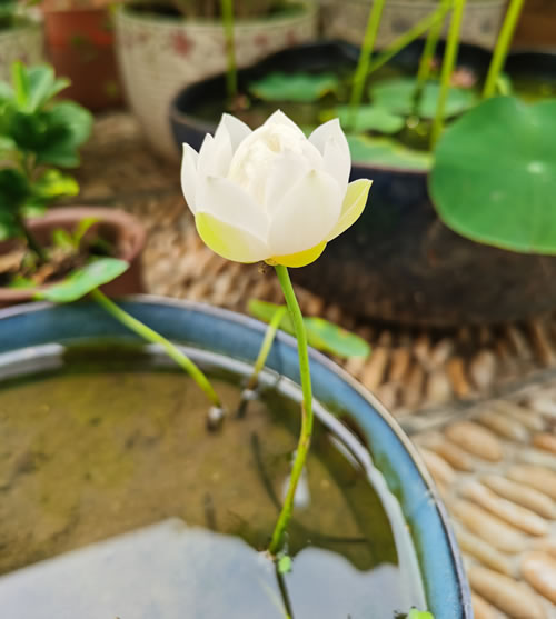 然古人赏莲,需至池塘、沼泽等水面宽广处,想在家中欣赏,那要有放得下荷花缸的庭院或家中有池沼,绝对奢侈,非寻常人家能为之。古虽已有碗莲栽种之法,但还不是真正的小微型荷花,只有高手方能一试,成功者寥寥。真正的小型荷花是近代才面世,而真正的微型碗莲出现还不到二十年。