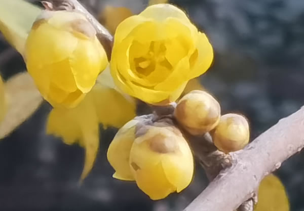 按赵天榜著《中国蜡梅》一书记载:全国蜡梅品种共有165个,当属不少。其喜生长在冷僻,高燥,背风而下午光照不多的地方。它不需绿叶衬托,在寒冬中绽放,为岁寒隽品,深为人们所赞赏。在充满希望与喜悦的春节,人们总喜欢把它插在一只花瓶里,供于案头。那苍枝上朵朵金黄的花,明亮耀眼,幽香阵阵,使人嗅之精神焕发。