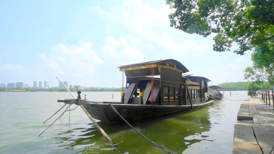 南湖红船是为纪念中国共产党在浙江嘉兴南湖一艘游船上诞生这一重大历史事件而仿制。停泊在南湖湖心岛烟雨楼东南岸水面。