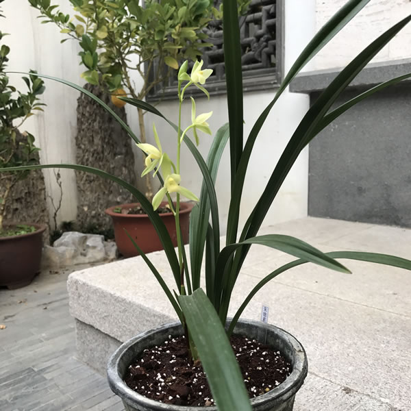 细杆花一般杆易弯曲,但朱德素因杆硬,木质化很强,在不需支撑的情况下也不易弯曲。 此兰花叶兼收,是不可多得的佳种。 此兰是建兰中较易栽培的品种,喜三五株一起栽种,有利于它生长开花。该品种不可直接放在阳光直射的地方栽培,喜散射光,浇水一般见干就浇即可。