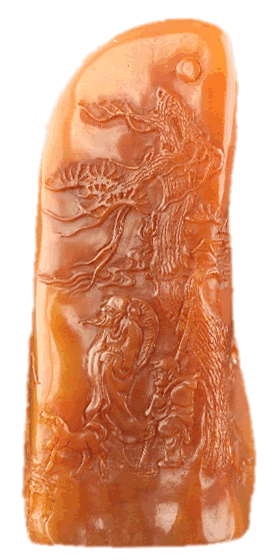 1.橘皮黄自然钮《垂钓图》薄意章。
