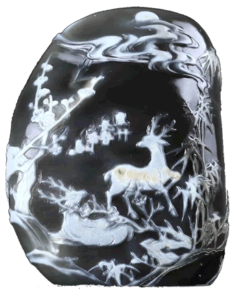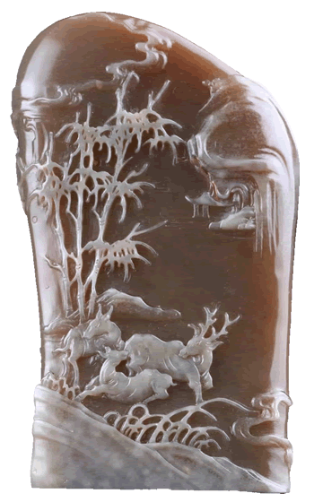 老挝白皮灰田《鹿竹长春》摆件(作者:阿贵)