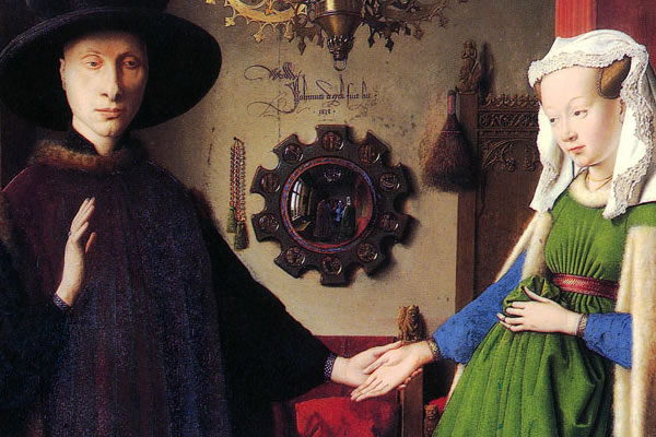 扬·凡·埃克擅长画肖像,他已完全摆脱了中世纪那种拘谨的传统,而能真实地再现人物的外貌和个性特征。《阿尔诺芬尼夫妇像》就是他的代表作品。