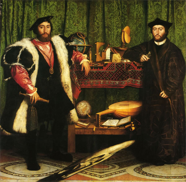 在英国期间,作为他的肖像画最佳作品是这幅《两个外交家》又名《大使们》、《外交官们》。