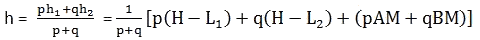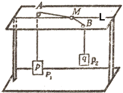 q·BM达到最小是等价的。因为根据力学原理,我们这个力学装置处在平衡状态的充要条件是这组装置的总重心最低。当小环在M点时,若设L、A、B所在水平面距地面高度为H,则砝码P,则砝码P1、P2到地面的距离h1和h2分别是: