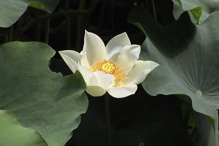 这么多的白荷花,一朵有一朵的姿势。看看这一朵,很美;看看那一朵,也很美。如果把眼前的这一池荷花看做一大幅活的画,那画家的本领可真了不起。