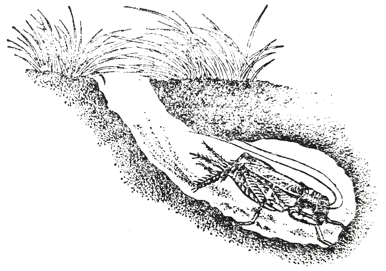 在儿童时代,我到草地上去捉蟋蟀,把它们养在笼子里,用菜叶喂它们。现在为了研究蟋蟀,我又搜索起它们的巢穴来。