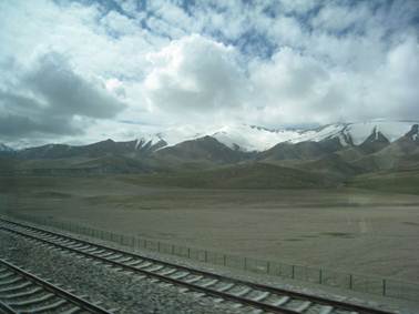 在青藏铁路上遥看昆仑山冰峰