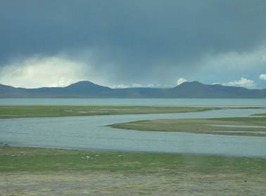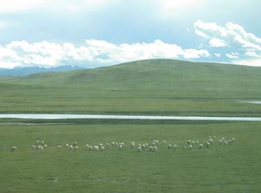 过了阿里地区,景色为之一变:蓝天、白云、湖泊、草甸扑面而来,成群的牦牛、肥羊散布其间,让人很难想象:在如此高海拔地区有如此丰美的水草!