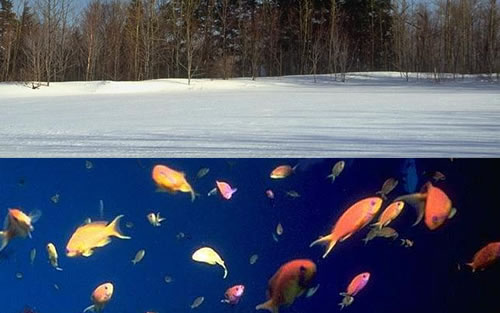 水面冰雪覆盖,水下生机盎然