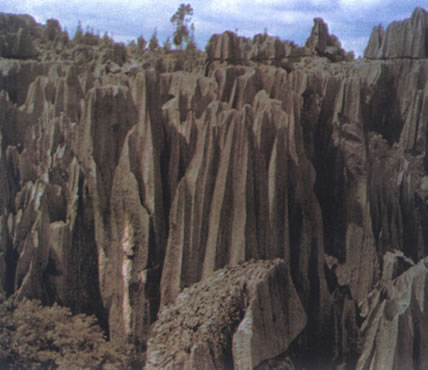 由于岩性和构造的不同,表现出不同的特征。①滇中由紫色砂页岩组成,又称红色高原,属康滇地轴的一部分,基本为一长期大型隆起地带,地层发育不全,缺失古生代海相地层。中生代时本区为大型坳陷区,地表以紫色砂岩、页岩为主的侏罗、白垩系地层厚达5000~10000米。燕山运动时,除局部地区外,广大地区褶皱微弱,并以穹隆、碗状向斜,短轴褶皱为特色。②滇东由碳酸盐岩类组成,喀斯特地貌发育,又称为滇东喀斯特高原,地表多峰林、峰丛、石林、漏斗、溶洞、溶蚀洼地和地下暗河等较典型的喀斯特地貌景观,其中路南石林是著名的游览胜地。